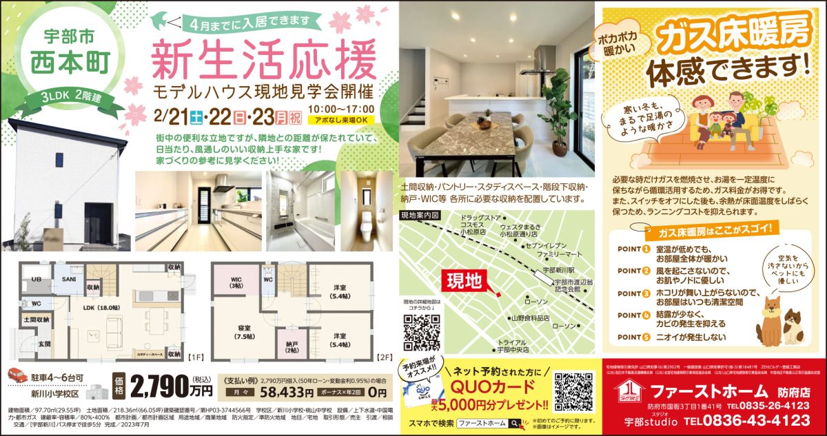 【見学会】2/21・22・23 新生活応援 モデルハウス現地見学会 ファーストホーム【宇部市】